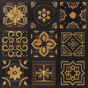 Antique Gold Hammered - Persian Motifs - Gold, Brown - Decorative Ceiling Panel - 2 ft x 2 ft