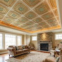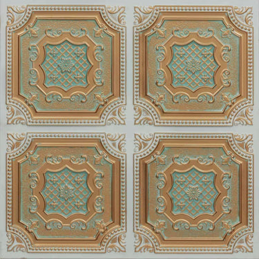 Avant Arabian Green - Persian Motifs - Green, Gold - Decorative Ceiling Panel - 2 ft x 2 ft