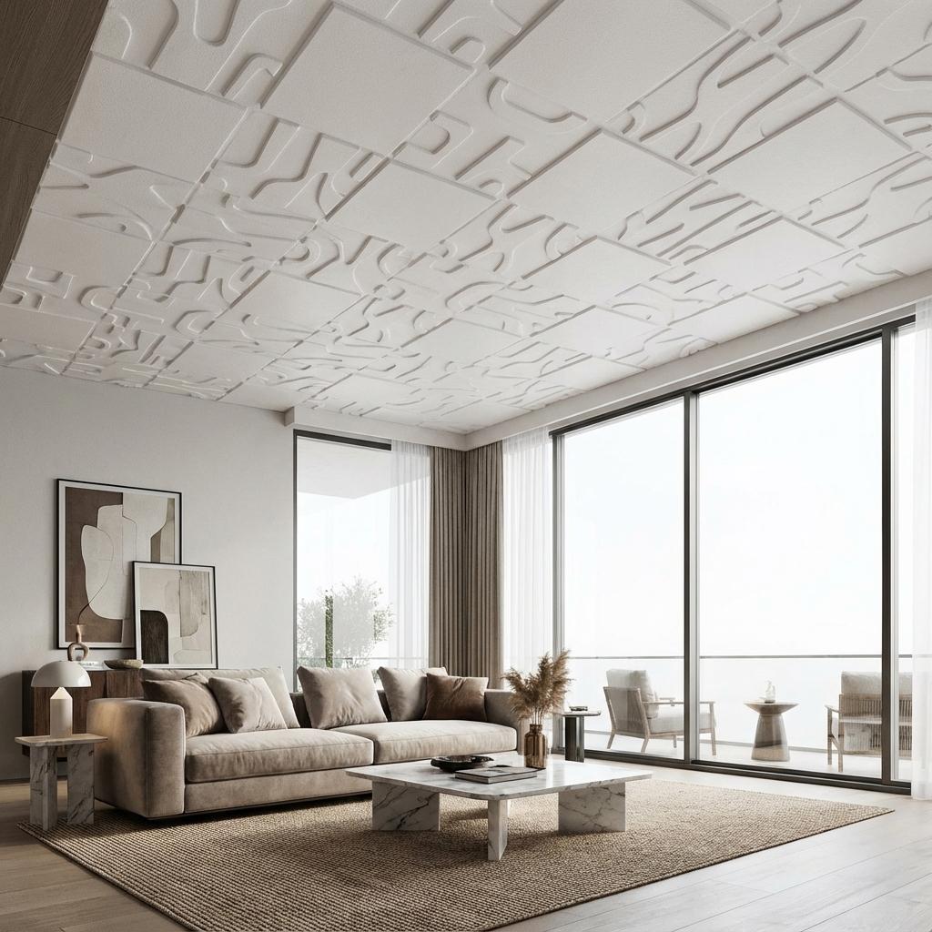 Basic Paintable - Greek Geometric - White - Decorative Ceiling Panel - 2 ft x 2 ft