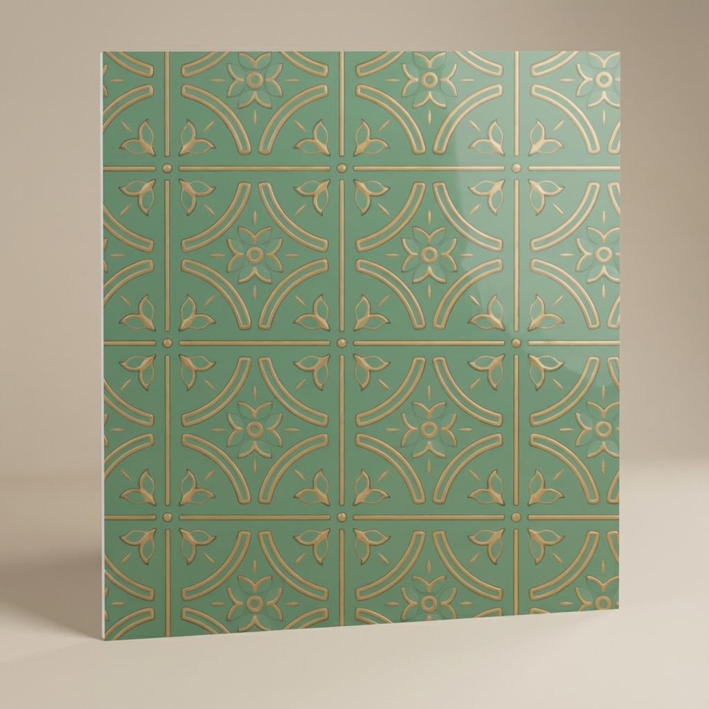 Bold Arabian Green - Moraccan Meshwork - Green, Gold - Decorative Ceiling Panel - 2 ft x 2 ft