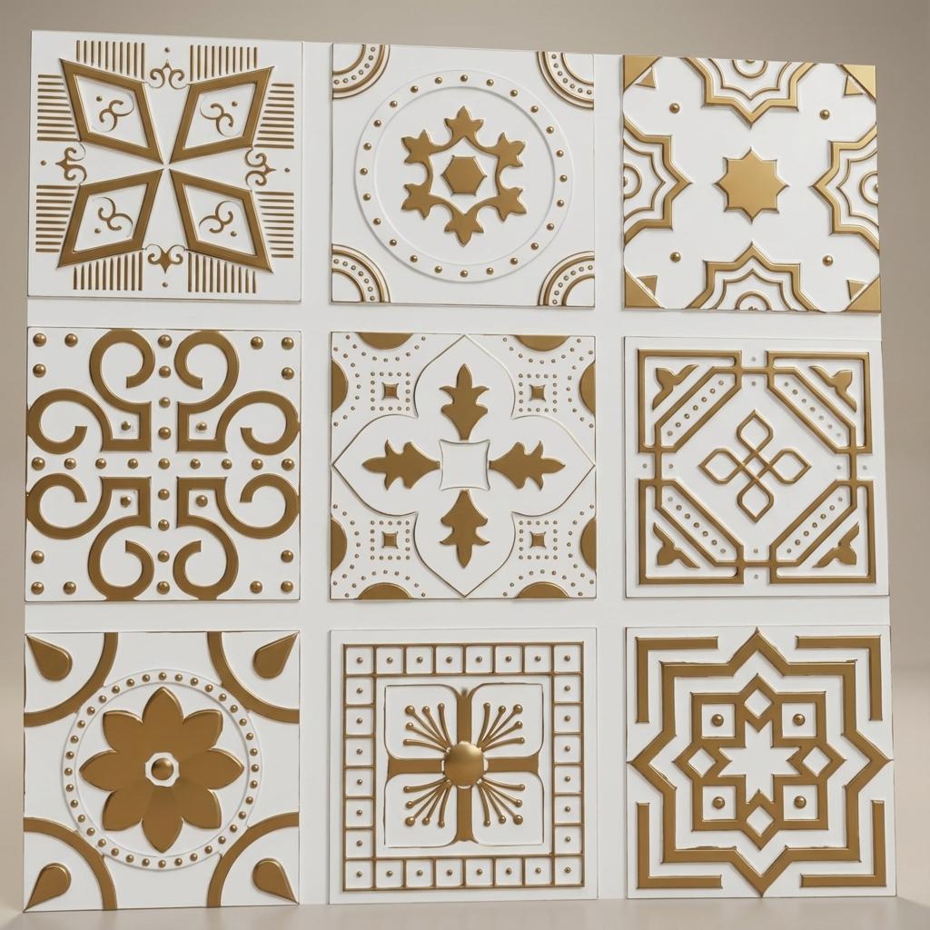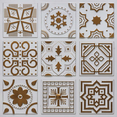 Bronze Antique White - Persian Motifs - White, Beige - Decorative Ceiling Panel - 2 ft x 2 ft