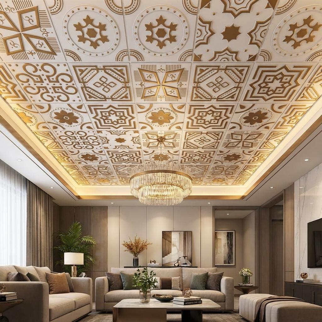 Bronze Antique White features luxurious metallic finishes for contemporary interiors. This sophisticated PVC ceiling panel combines stunning visual appeal with practical durability, using advanced printing technology to create authentic metallic effects with impressive depth. The glossy finish beautifully reflects light, perfect for modern elegance. Ideal for statement-making spaces, this panel delivers exceptional quality with water resistance, easy maintenance, and remarkable longevity.