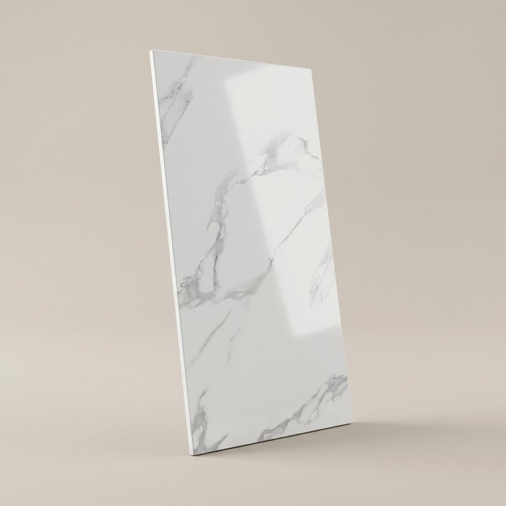 Premium Statuario Marble in Pure White bringing refined elegance to contemporary spaces. Made from refined clays blended with minerals like feldspar and quartz, pressed into shape and fired at high temperature to create a hard, dense, water‑resistant body with a protective glaze option for color and stain resistance.