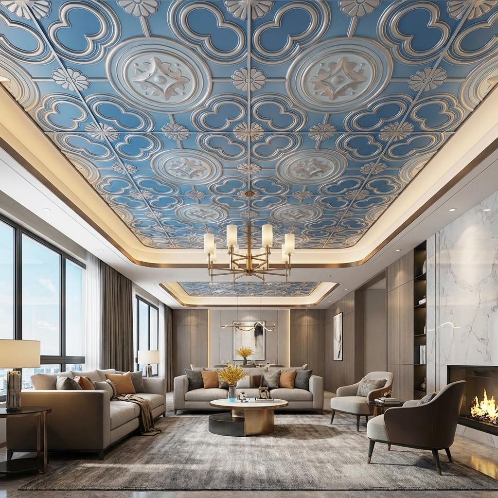Colorful Blue Dove features luxurious metallic finishes for contemporary interiors. This sophisticated PVC ceiling panel combines stunning visual appeal with practical durability, using advanced printing technology to create authentic metallic effects with impressive depth. The glossy finish beautifully reflects light, perfect for modern elegance. Ideal for statement-making spaces, this panel delivers exceptional quality with water resistance, easy maintenance, and remarkable longevity.