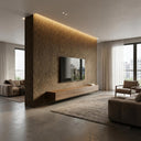 Louvers constructed with Polystyrene core and Stone, finished in matte Charcoal black. Delivers a textured modern look suitable for accent walls.