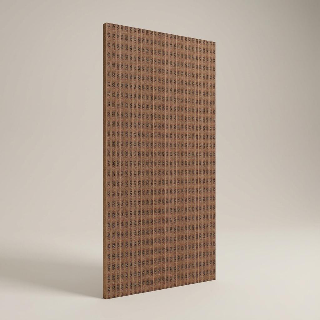 Louvers constructed with Cork core and Indian Arts, finished in matte Multi-colour. Delivers a textured modern look suitable for accent walls.