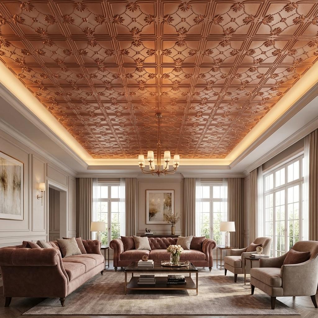 Dream Sandstone features luxurious metallic finishes for contemporary interiors. This sophisticated PVC ceiling panel combines stunning visual appeal with practical durability, using advanced printing technology to create authentic metallic effects with impressive depth. The glossy finish beautifully reflects light, perfect for modern elegance. Ideal for statement-making spaces, this panel delivers exceptional quality with water resistance, easy maintenance, and remarkable longevity.