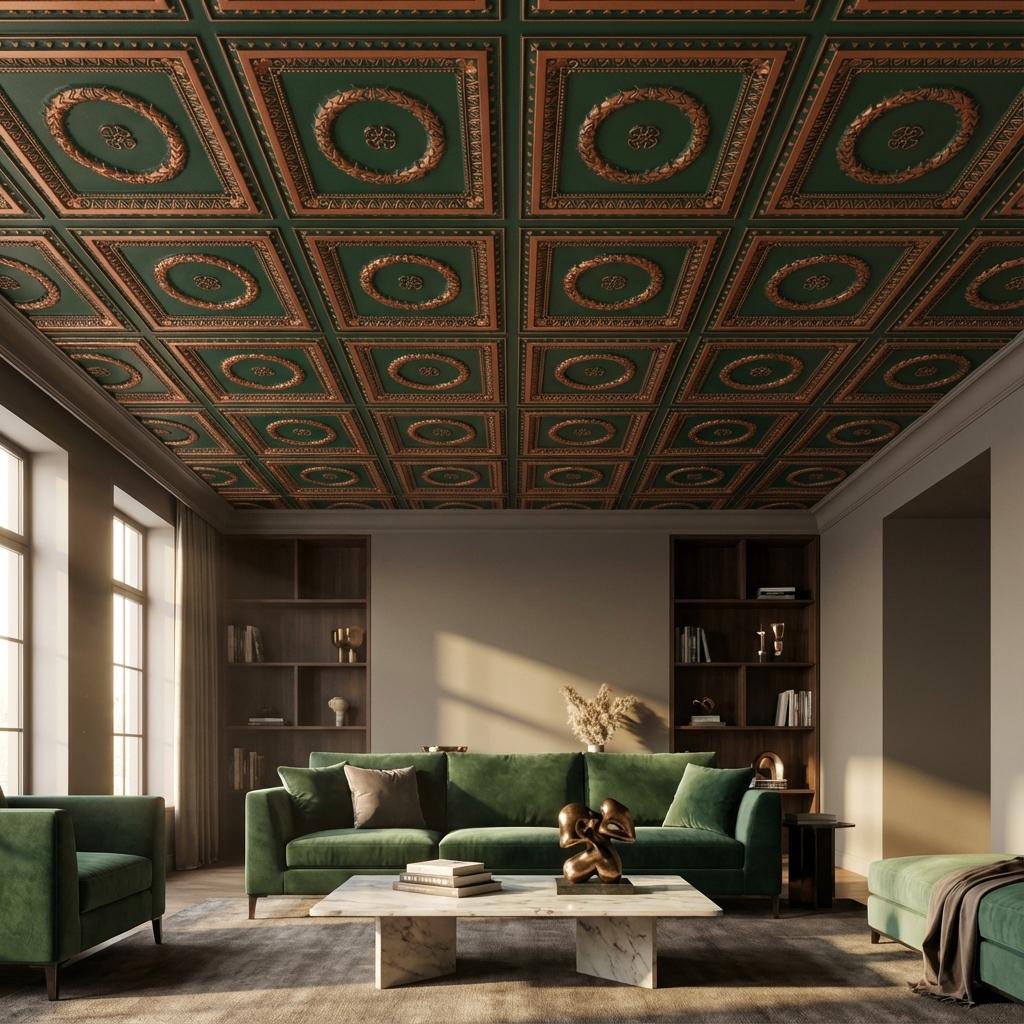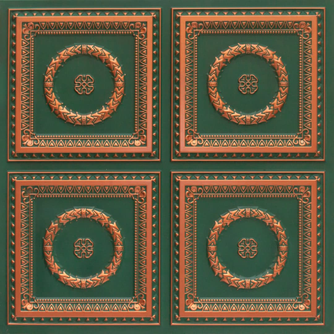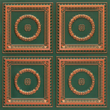 Forged Patina Deep And Dark - Persian Motifs - Green, Black - Decorative Ceiling Panel - 2 ft x 2 ft