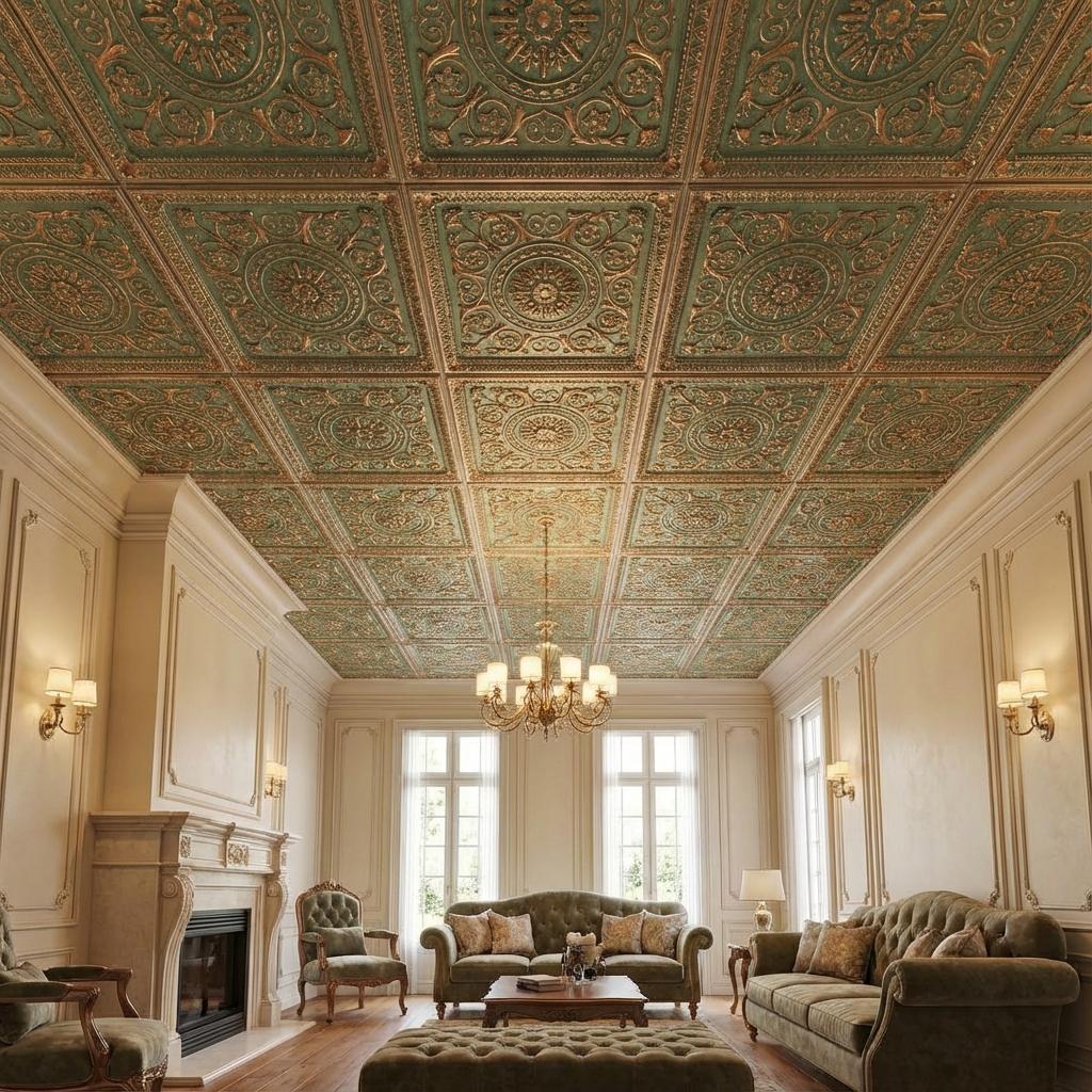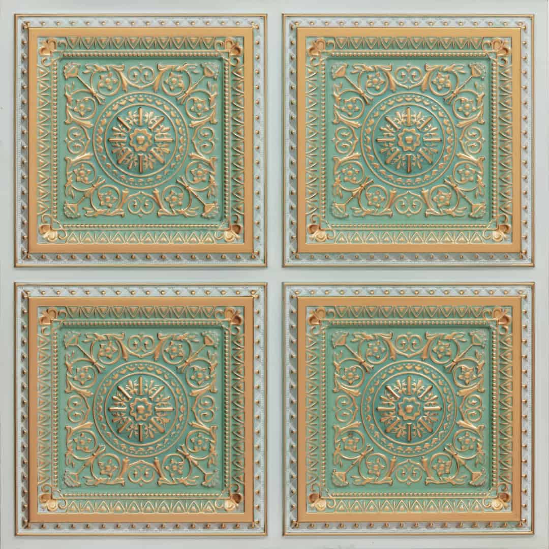 Gallery Arabian Green - Persian Motifs - Green, Gold - Decorative Ceiling Panel - 2 ft x 2 ft