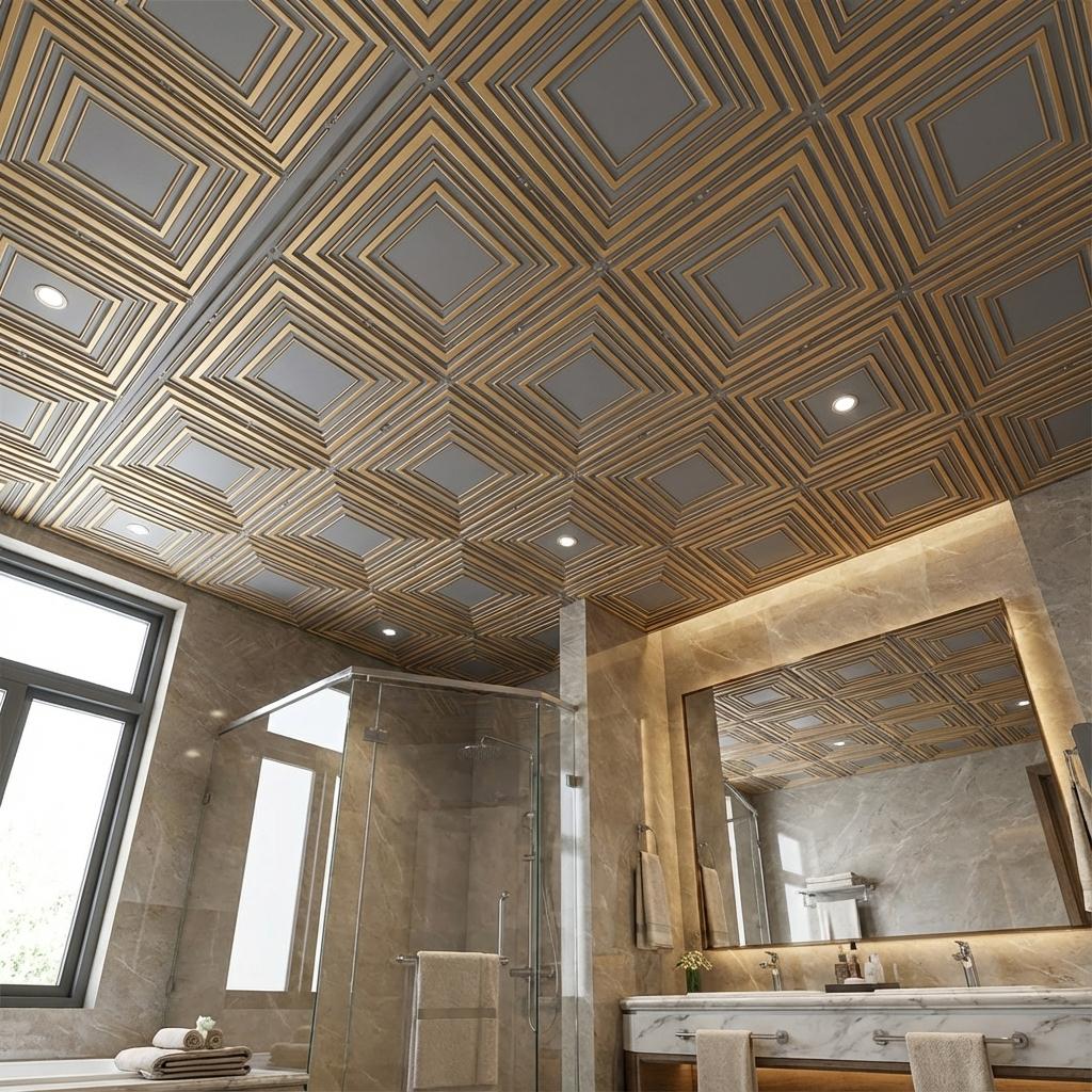 Intense Royal Grey features luxurious metallic finishes for contemporary interiors. This sophisticated PVC ceiling panel combines stunning visual appeal with practical durability, using advanced printing technology to create authentic metallic effects with impressive depth. The glossy finish beautifully reflects light, perfect for modern elegance. Ideal for statement-making spaces, this panel delivers exceptional quality with water resistance, easy maintenance, and remarkable longevity.