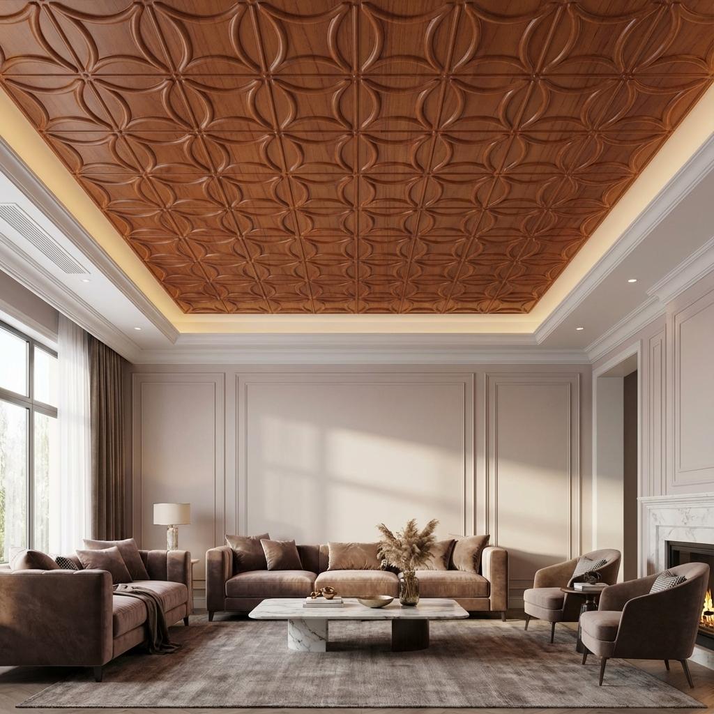 Maple Cherry Wood - Moraccan Meshwork - Brown, Wooden - Decorative Ceiling Panel - 2 ft x 2 ft