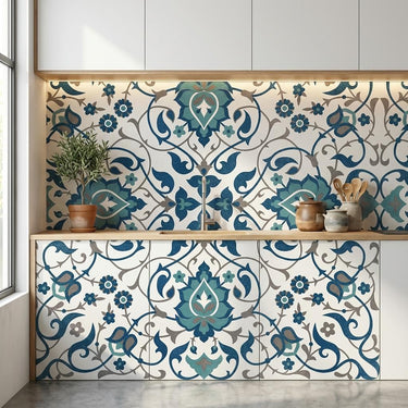 Balanced elegance in medium grey. Moroccan patterns rendered for those seeking cultural richness with modern harmony. Made from refined clay, quartz/silica, and feldspar fired at high temperature to create a dense, low‑porosity body with color and pattern running through the entire thickness for superior wear and chip camouflage.