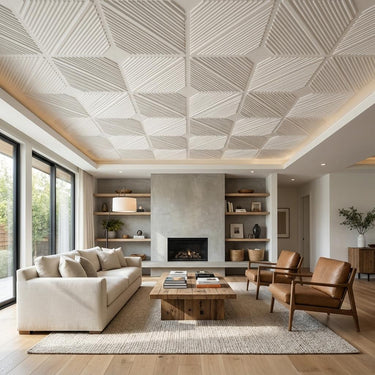 Neutral Paintable - Moraccan Meshwork - White - Decorative Ceiling Panel - 2 ft x 2 ft