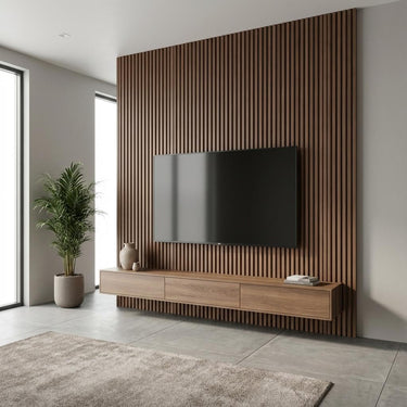 Louvers constructed with Polystyrene core and Pastel - Solid, finished in matte Multi-colour. Delivers a textured modern look suitable for accent walls.