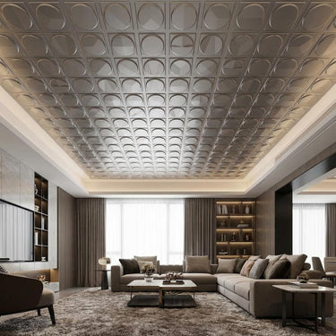 Pigment Silver - Greek Geometric - Silver - Decorative Ceiling Panel - 2 ft x 2 ft