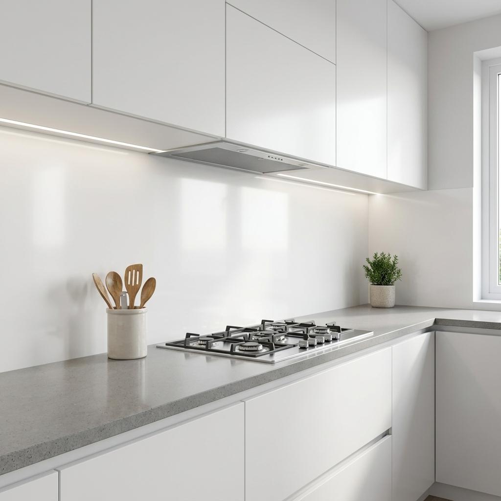 Gallery white foundation. Perfect white creates clarity—ultimate blank canvas for unlimited design expression. Made from refined clay, quartz/silica, and feldspar fired at high temperature to create a dense, low‑porosity body with color and pattern running through the entire thickness for superior wear and chip camouflage.