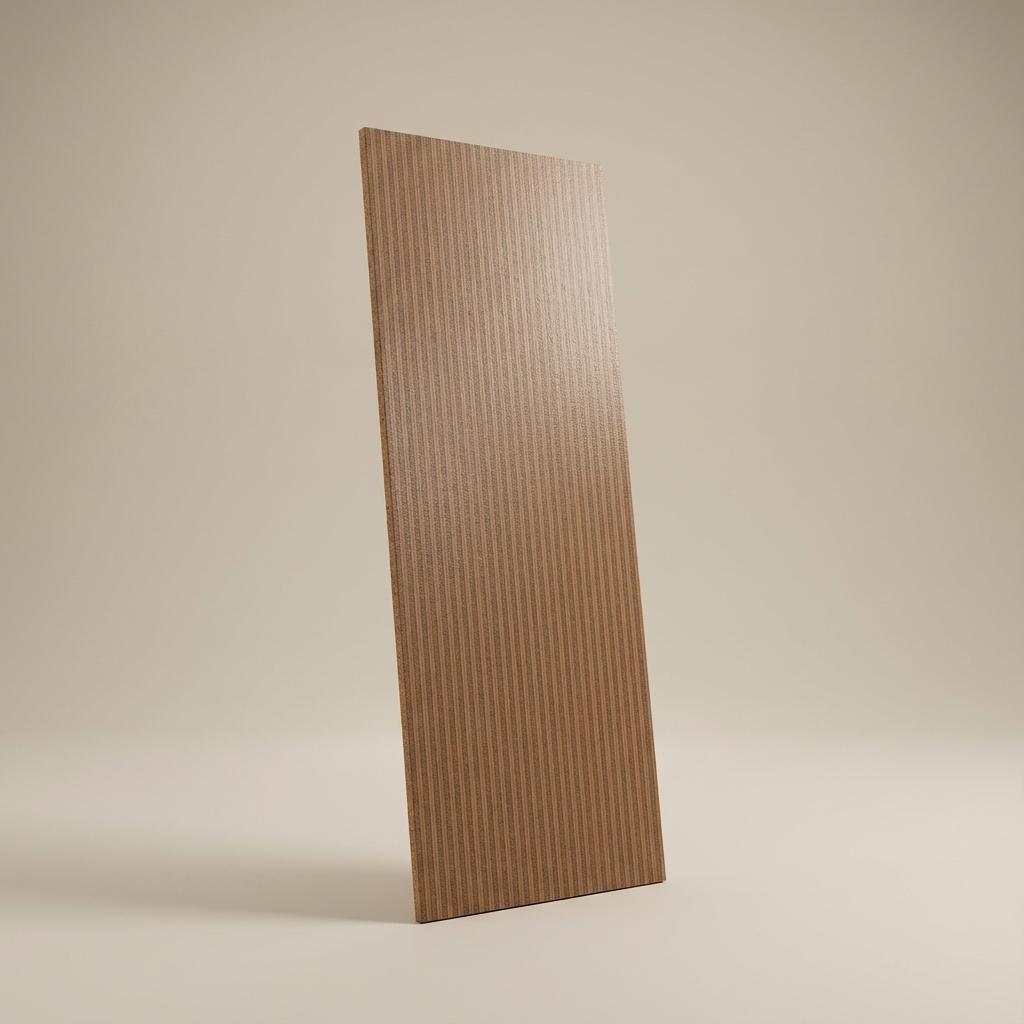 Louvers constructed with Cork core and Indian Arts, finished in matte Multi-colour. Delivers a textured modern look suitable for accent walls.