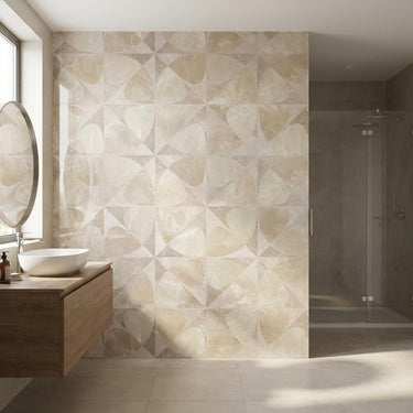 Intricately designed repeating motifs infuse tiles with personality and rhythm—a seamless dialogue between tradition and contemporary aesthetic sensibility. Made from refined clay, quartz/silica, and feldspar fired at high temperature to create a dense, low‑porosity body with color and pattern running through the entire thickness for superior wear and chip camouflage.