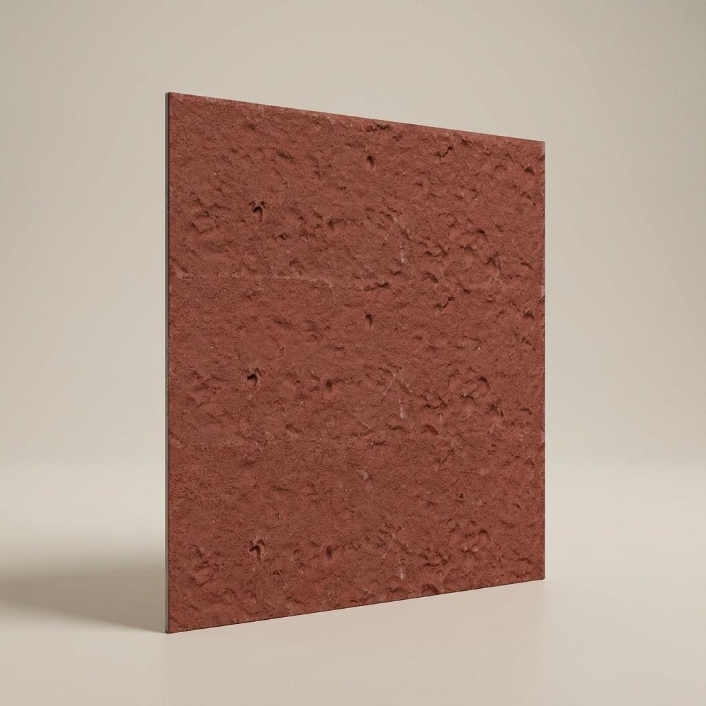 Clay Panels constructed with Clay core and 3D Stone, finished in matte Brick red. Delivers a textured modern look suitable for accent walls.