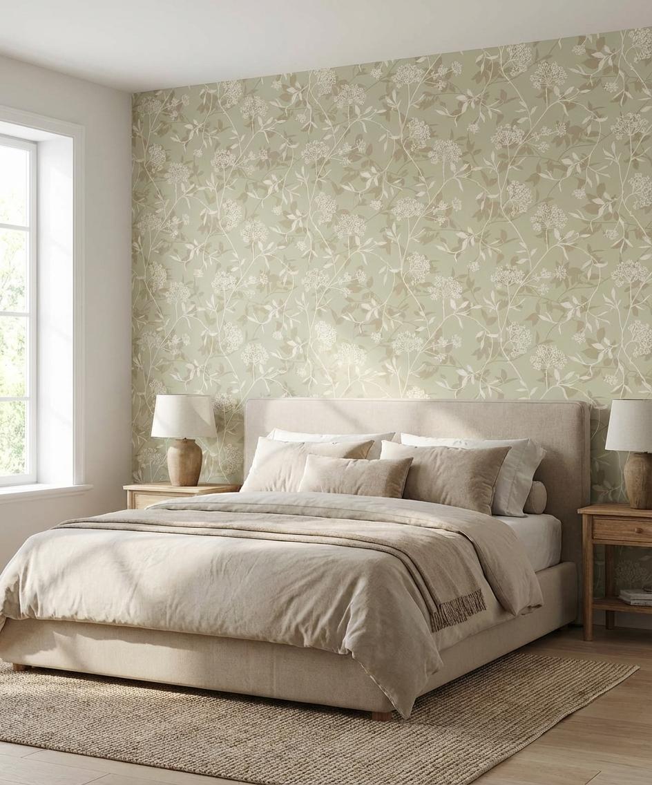 Soft Blossoms- Soft Fawn, Blooming Aura, Wallpaper, 56 sft