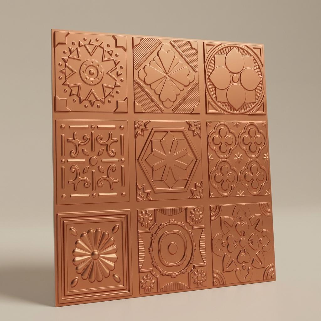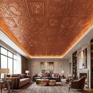 Steady Copper - Persian Motifs - Copper - Decorative Ceiling Panel - 2 ft x 2 ft