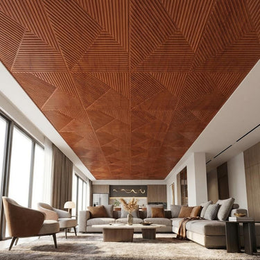 Timber Cherry Wood - Greek Geometric - Brown, Wooden - Decorative Ceiling Panel - 2 ft x 2 ft