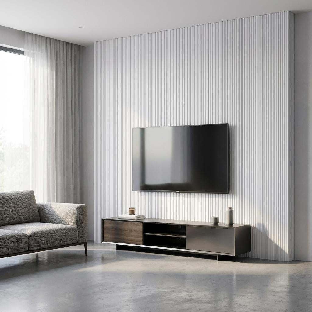 Louvers constructed with PVC core and Honeycomb, finished in matte Multi-colour. Delivers a textured modern look suitable for accent walls.