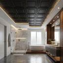 Vibrant Black features luxurious metallic finishes for contemporary interiors. This sophisticated PVC ceiling panel combines stunning visual appeal with practical durability, using advanced printing technology to create authentic metallic effects with impressive depth. The glossy finish beautifully reflects light, perfect for modern elegance. Ideal for statement-making spaces, this panel delivers exceptional quality with water resistance, easy maintenance, and remarkable longevity.