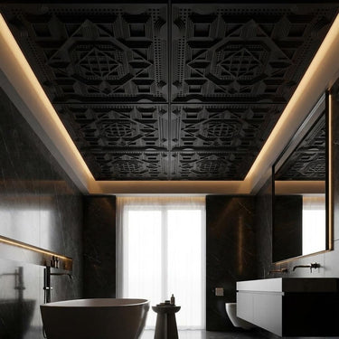 Vivid Black - Greek Geometric - Black - Decorative Ceiling Panel - 2 ft x 2 ft